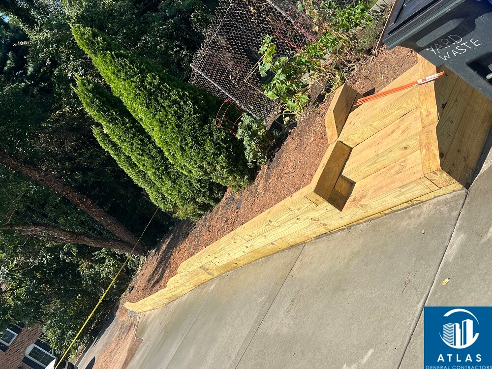 Concrete Driveway, Walkway and Wood Retaining Wall Project by Atlas General Contractors - McLean Virginia
